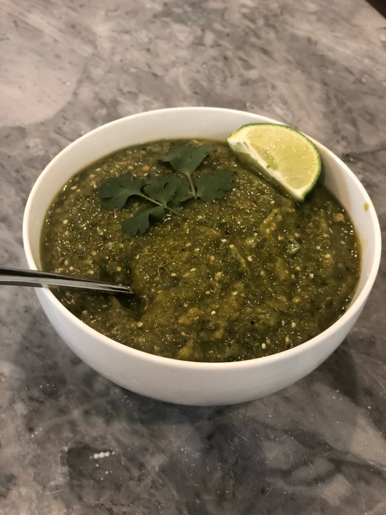 This week in my veggie box I got a bunch of tomatillos so I decided with Cinco De Mayo around the corner (and taco Tuesday) I would whip up some Tomatillo Salsa Verde.
